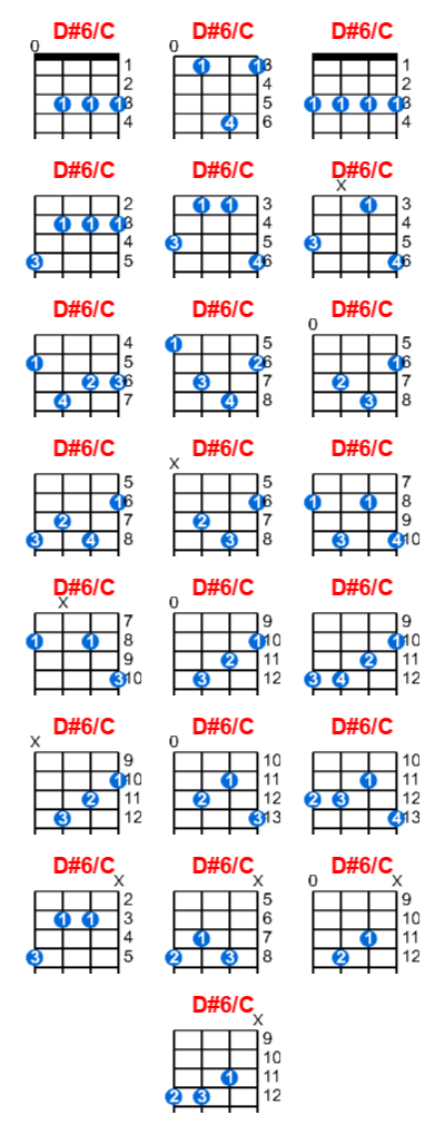 Hợp âm ukulele D#6/C và các thế bấm